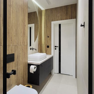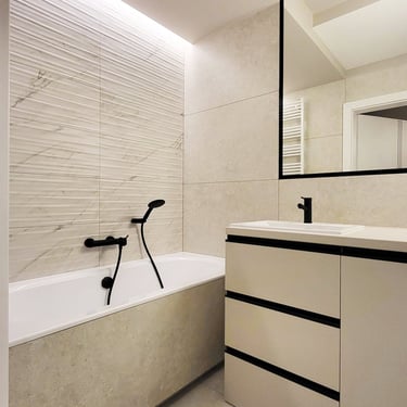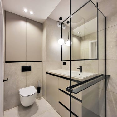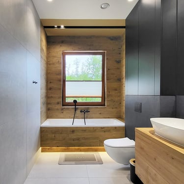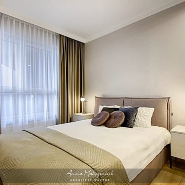 Całość dopracowaliśmy w detalach – od armatury, przez meble, aż po zasłony i dodatki. Pełne wykończenie ze sprawdzonym zespołem, z którym działam od lat.