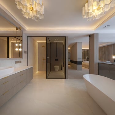 Wnętrze emanuje spokojem i elegancją, pozostając przy tym funkcjonalne i przyjazne w codziennym użytkowaniu.