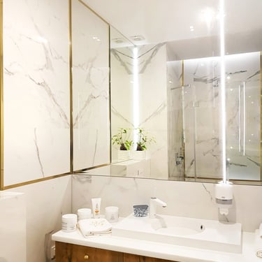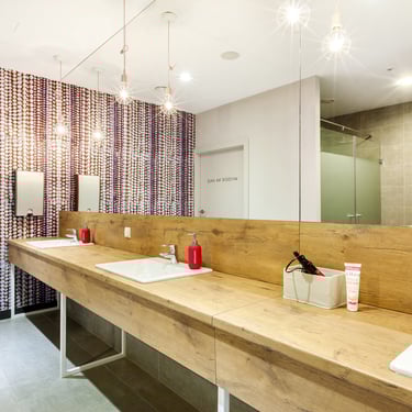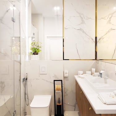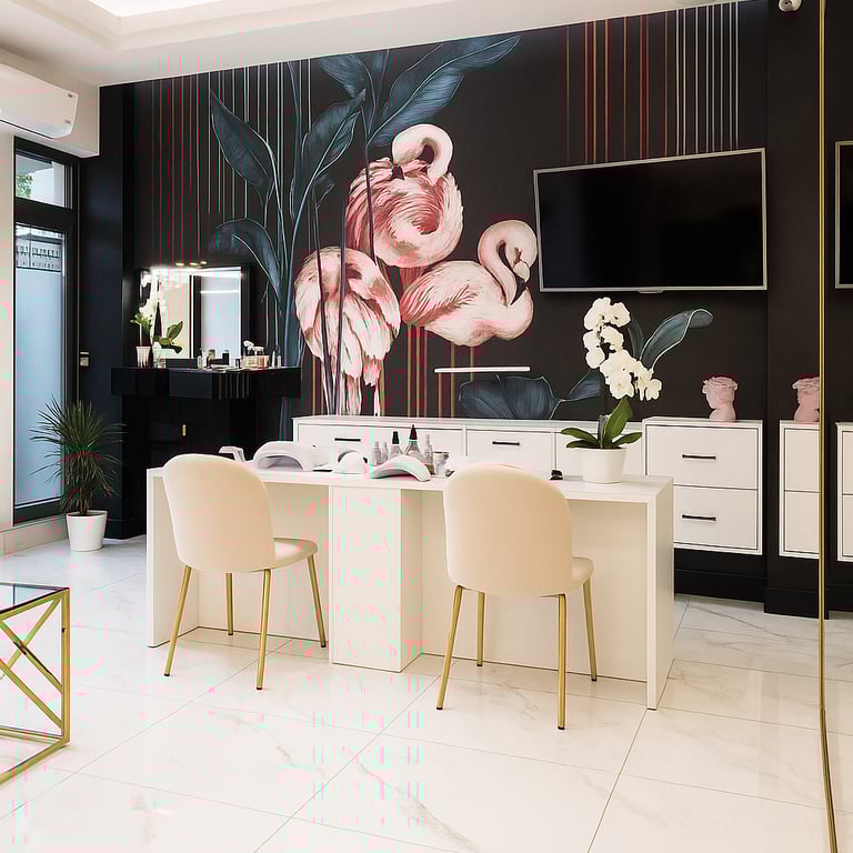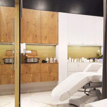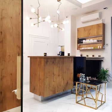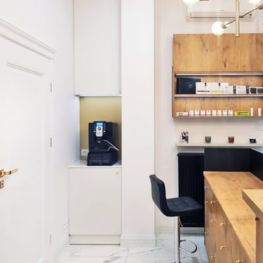 Projekt salonu kosmetycznego łączy nowoczesność, kobiecą subtelność i luksusową prostotę. Wnętrze zaprojektowano tak, aby już od progu wprowadzało klientów w atmosferę relaksu i subtelnego luksusu. Ciepła tonacja drewna została zestawiona z bielą marmurowych płytek i złotymi akcentami, tworząc wrażenie lekkości i elegancji. Jasne barwy i miękkie światło budują atmosferę czystości, schludności i profesjonalizmu.