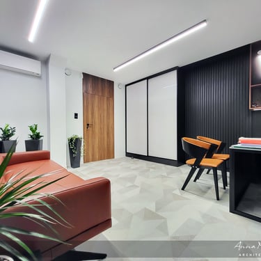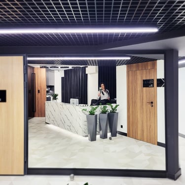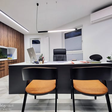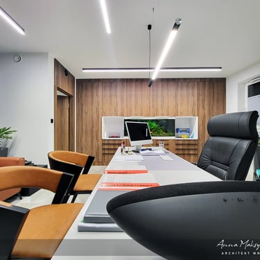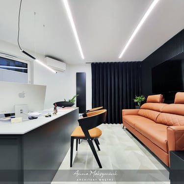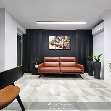 Lokal usługowy o powierzchni 300 m2 stanowił wyzwanie nie tylko pod względem projektowym, gdzie powinien łączyć oficjalny charakter z komfortem użytkowania i funkcjonalnością, ale też poszczególne pomieszczenia musiały spełnić szereg założeń i biznesowych wytycznych.
